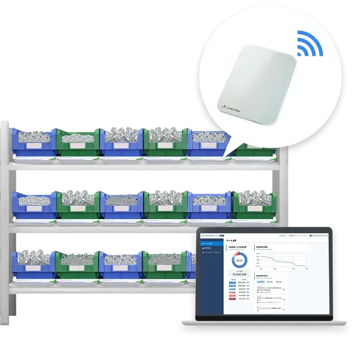 ネジなどの部品、副資材・仕掛品・粉モノや液体の原材料まで、日々の在庫確認や棚卸・発注まで自動化します。